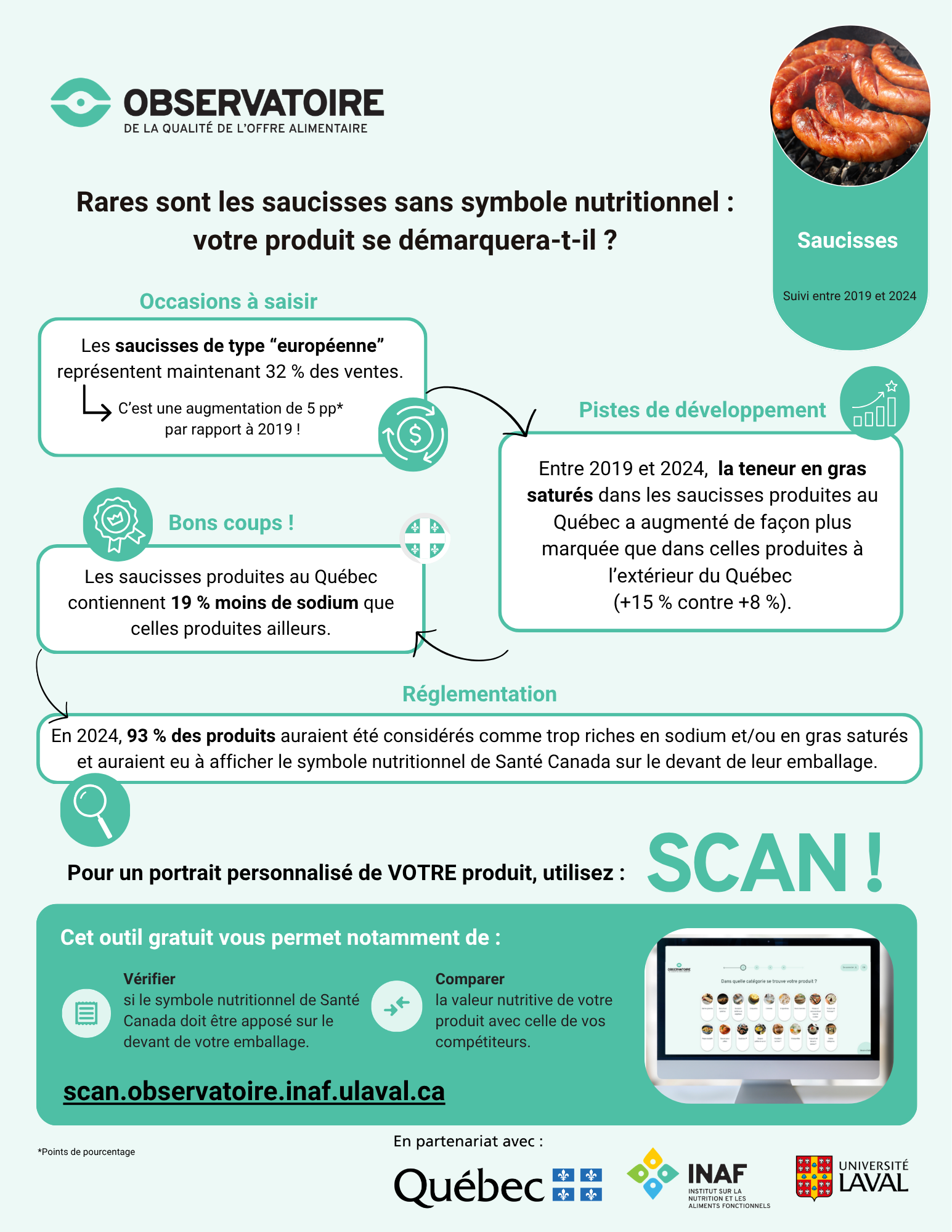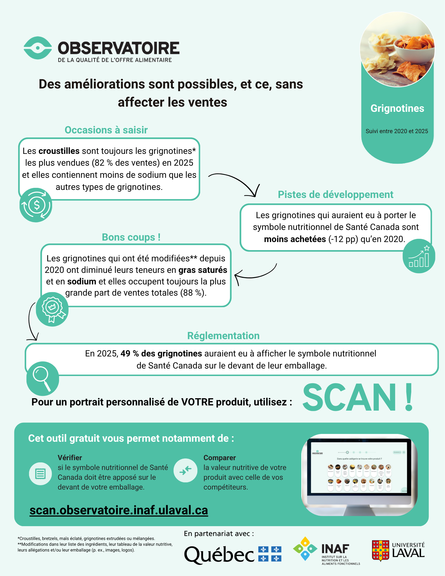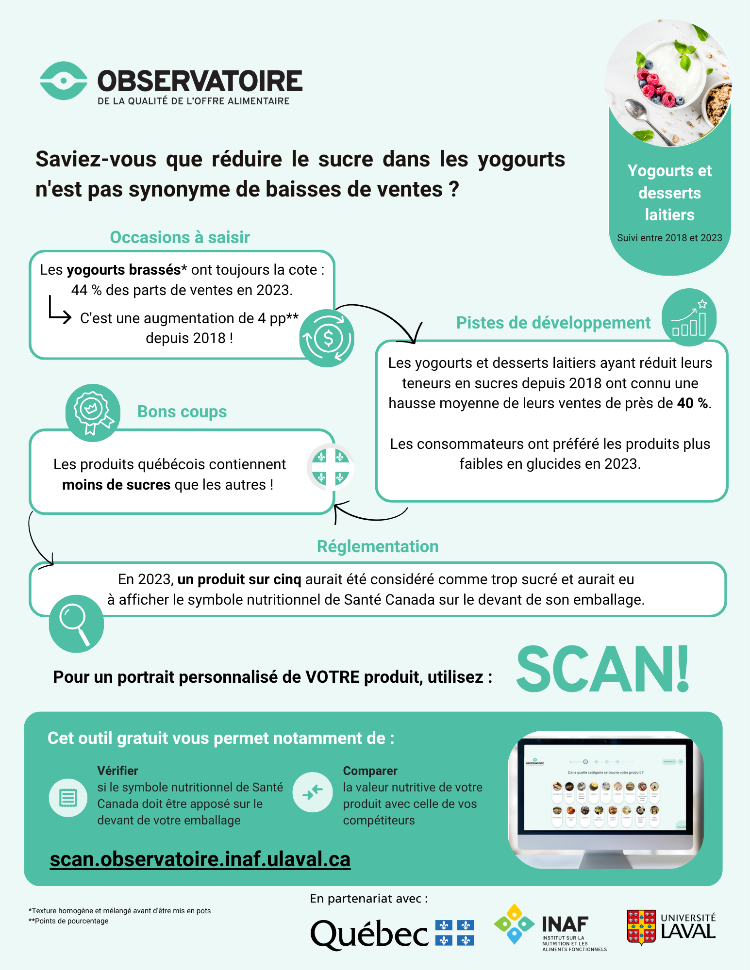L’Observatoire désire que les contenus qu’il génère soient utiles et compréhensibles pour l’ensemble de ses publics cibles. C’est pourquoi il génère maintenant des infographies simplifiées à partir des résultats de ses travaux destinées aux acteurs de la transformation alimentaire.